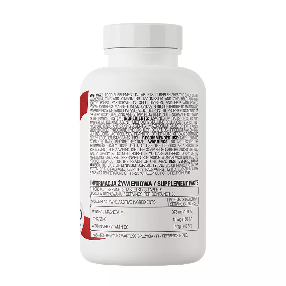 Az OstroVit MgZB egy kiváló minőségű étrend-kiegészítő, amely három, az emberi szervezet számára szükséges vegyületből, azaz magnéziumból, cinkből és B6-vitaminból (pirodoxin) áll. Fizikailag aktív felnőtteknek, különösen sportolóknak szánt étrend-kiegészítő.