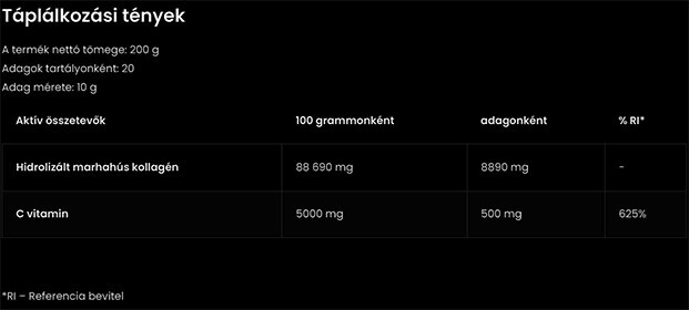 • A hidrolizált marhahús kollagén forrása - Egy adag étrend-kiegészítő akár 8 869 mg értékes vegyületet biztosít a szervezetnek.