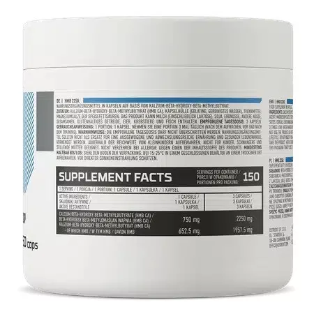 150 kapszula egy csomagban 1 kapszula - 1 adag 2250 mg HMB Ca 1 adagban HMB - MI EZ? A HMB egy szerves kémiai vegyület a hidroxisavak csoportjából (molekulaszerkezetükben legalább egy hidroxil- és egy karboxilcsoportot tartalmaznak). A leucin (a szervezetünk megfelelő működéséhez szükséges egyik exogén aminosav) egyik metabolitja. Tudományos források szerint a béta-hidroxi-béta-metil-butirát fontos szerepet játszik szervezetünkben, ami a fehérjelebontás szabályozása. HMB, vagyis β-hidroxi-β-metilbutirát, egy aminosavszármazék, amely a leucin nevű esszenciális aminosav metabolitja. A HMB-nek számos kutatásban vizsgálták a testépítésre, sportteljesítményre és izomvesztés megelőzésére gyakorolt hatásait. A HMB-nek számos lehetséges hatása van a szervezetre: Izomvédelem: Az egyik fő kutatási terület a HMB-nek az izomvesztés megelőzése és az izomtömeg megtartása, különösen az olyan állapotokban, mint például az intenzív edzés, vagy az izomzatot érintő sérülések vagy betegségek. Erőszint növelése: A HMB-nek van egyes tanulmányok szerinti képessége az erőszint növelésére, ami sportolók és testépítők számára fontos lehet. Fáradtság csökkentése: Néhány kutatás azt sugallja, hogy a HMB képes lehet csökkenteni a fáradtságot, ami hozzájárulhat a hatékonyabb edzésekhez és teljesítményhez. Izomregeneráció: A HMB-t néhány kutatás az izomsejtek regenerációjában játszott szerepének köszönhetően a sérülések utáni gyógyulási folyamatban is megvizsgálta.