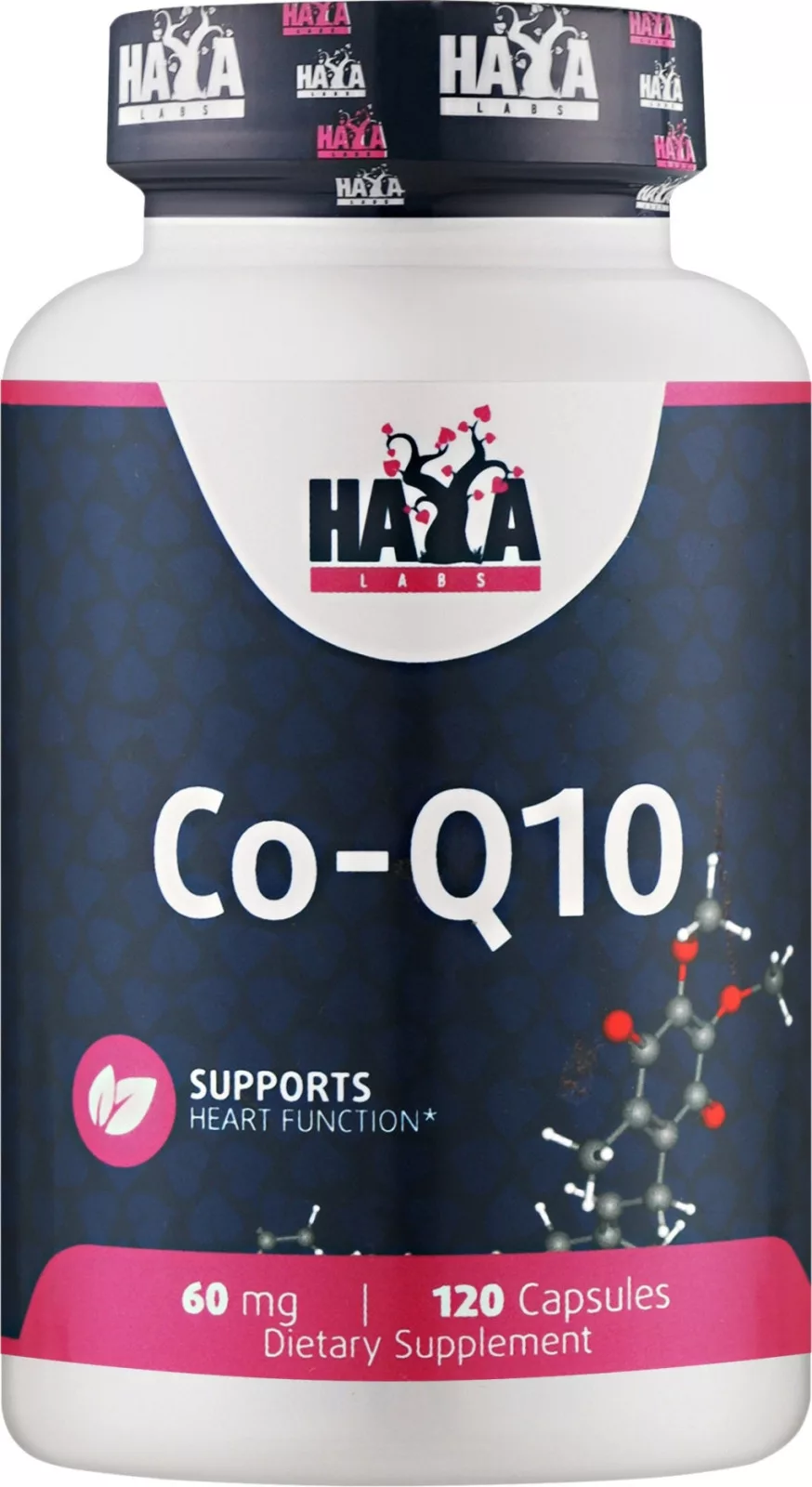 A Haya Labs Co-Q10 120 kapszulát tartalmaz, 60 mg koenzim Q10 adagonként.
