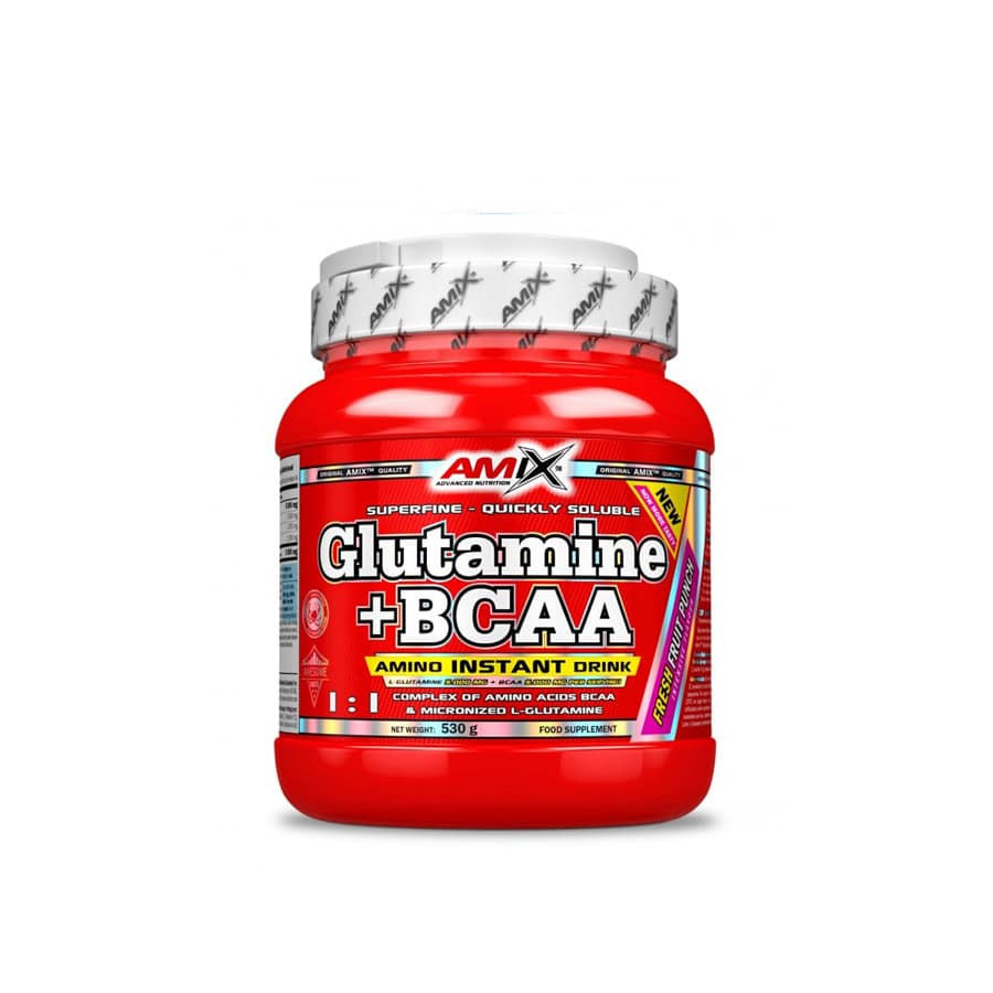 A Glutamine + BCAA elágazó láncú aminosavakat tartalmaz, optimális arányban 2: 1: 1 és ugyanannyi mikronizált L-glutamint . Az L-glutamin a szervezetben a legelterjedtebb aminosav, amely a vázizomzat szabad aminosav-készletének több mint 60% -át, és az összes keringő aminosav 20% -át teszi ki. A BCAA aminosavak a fehérje építőkövei, amelyek hozzájárulnak az izomtömeg növekedéséhez és fenntartásához. Ezen esszenciális aminosavak (L-leucin, L-izoleucin, L-valin) kombinációja kb. az összes izomfehérje 33% -a. Előnyök: