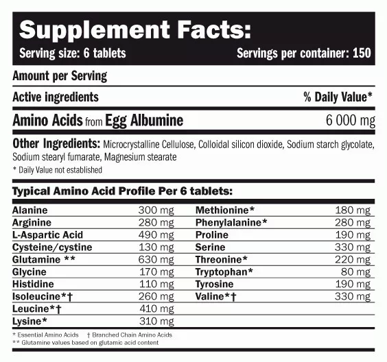 A készítmény a kiváló minőségű hidrolizált tojásfehérjéből kivont aminosavakat tartalmaz. A hidrolizált tojásfehérje az egyik legjobb, magas biológiai értékű fehérjeforrás. Optimális arányban tartalmazza az összes esszenciális és nem-esszenciális aminosavakat. Az Amix ™ EGG Amino 6000 egy kiváló kiegészítő, mely kielégíti a sportolók szigorú követelményeit, akiknek folyamatos, könnyen felszívódó aminosavellátásra van szükségük. ADAGOLÁS: 6 TABLETTA NAPONTA ÖSSZETEVŐK: