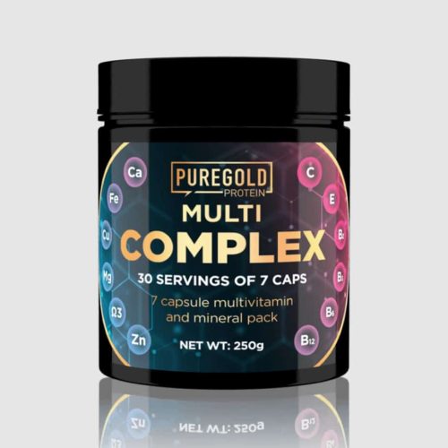 Multi Complex - Ásványi anyag és nyomelem pack A Pure Gold Protein Multi Complex egy olyan étrend-kiegészítő formula, melynek minden egyes napi csomagja megfelelő arányban tartalmazza azokat a mikró tápanyagokat, amelyek fedezni képesek a vitamin és ásványi anyag szükségletünket a hosszú, megerőltető mindennapok során, így többé már nem kell több forrásból, külön-külön összeválogatni a kapszulákat, tablettákat. Termékünk 30 aktív hatóanyaga közt megtalálható mangán, cink és B2-vitamin hozzájárul a sejtek oxidatív stresszel szembeni védelméhez. A C-vitamin hozzájárul az immunrendszer normál működéséhez intenzív testmozgás alatt vagy azt követően. A B6-vitamin hozzájárul a fáradtság és a kifáradás csökkentéséhez. A szójalecitin lágyzselatin kapszulában található kolin részt vesz a normál zsíranyagcserében. A kalcium hozzájárul a normál csontozat és normál fogazat fenntartásához, míg a magnézium részt vesz az idegrendszer megfelelő működésében és a normál energiatermelő anyagcsere-folyamatokban is.* *Tudományosan bizonyított, Európai Élelmiszer-biztonsági-Hatoság (EFSA) által engedélyezett állítások. 1 csomag tartalma: