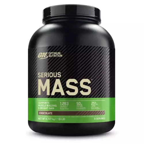 Az Optimum Nutrition Serious Mass tömegnövelő brutálisan nagy kalóriabomba, mely adagonként 1.250 kalóriát, 50g fehérjét, valamint hozzáadott kreatinnal, glutaminnal, illetve 25 féle vitaminnal és ásványi anyaggal.