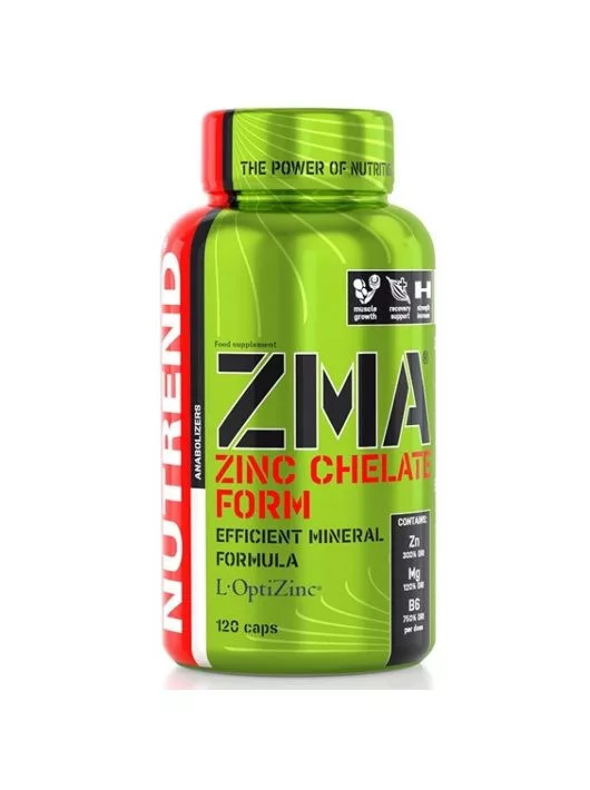 Egyedi ásványi anyag összetétel, (magnézium és zink) mely természetes úton emeli a tesztoszteron és IGF-1 (a növekedési hormon választja ki) szinteket, hatással van az izomerő növelésére, az edzés intenzitásának fokozására és az állóképesség javításra. Természetes összetevői növelik a növekedési hormon termelését és izmaid erejét. A luteinizáló hormon termelésének serkentése által növeli a tesztoszteron kibocsátását. A cink, magnézium és B6-vitamin hiányban szenvedő emberek többségének fizikai és szellemi teljesítőképessége csökken. A Nutrend ZMA tudományosan összeállított anabolikus ásványi anyag készítmény. Kiszerelés: 120 kapszula Javasolt használat: Tesztoszteron és IGf-1 szintek növelésére. Izomerő és izomtömeg növelésre. Edzés intenzitás, állóképesség fejlesztésre. Regeneráció, minőségi pihenés és mély alvás elérésére. 2-3 kapszula lefekvés előtt. Ötlet: A ZMA kiegészítés elsősorban lefekvés előtt fogyasztva elősegíti a tökéletes alvást és ezáltal fokozza a szervezet anabolikus hormonjainak termelését. Összetétel: