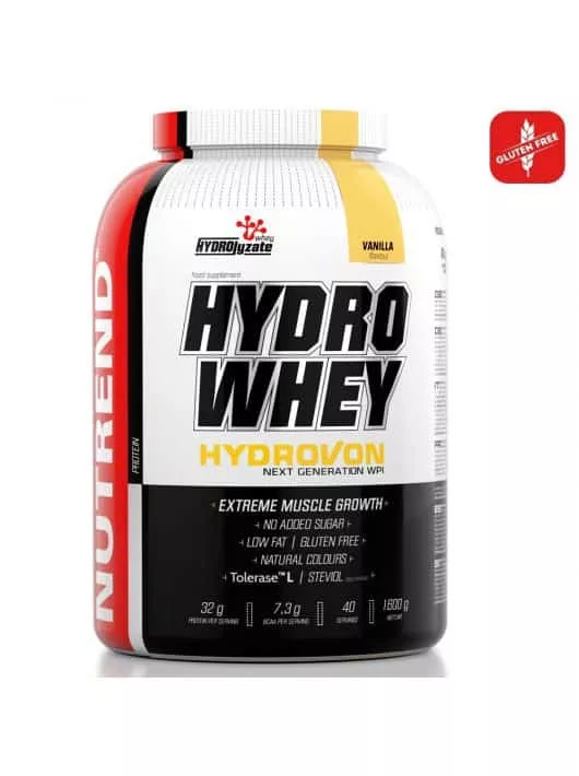 A Nutrend Hydro Whey kiemelkedően tiszta, ultragyors felszívódású, magas biológiai értékű fehérje izolátum. Az egyik legfejlettebb tejsavó protein készítmény a piacon. Ha egy szóval kéne jellemezni, akkor a legmegfelelőbb az volna, hogy: TÖKÉLETES! Ha első számú, könnyen emészthető protein tartalmú terméket szeretnéd, akkor válazd az ÚJ Nutrend HYDRO WHEY terméket ajánljuk!! Kiváló és márkás hidrolizált tejsavófehérje-izolátum, a Hydrovon™, amely a thriftily hidrolízis miatt nem veszíti el biológiai értékét, így magas aminosav-spektrummal rendelkezik. Az őshonos tejsavó-izolátum fehérjét az egyik legeredményesebb fehérjeforrásnak tekintik, mely az egyik legkiválóbb hasznosulással rendelkezik. Ha ez a fajta fehérje részleges enzimatikus hidrolízis megy keresztül, akkor a tejsavó izolátum nagyobb fehérjemolekuláit kisebb egységekre bontják, így ez az ultra-tiszta fehérjeizolátum szinte azonnal aminosavakat képes bocsátani a véráramba. Ez azt jelenti, hogy a kemény, megterhelő edzést követően a kimondottan rövid anabolikus ablakban szinte áradnak az izom építőkockái az izomrostokhoz. Azért, hogy ez a tökéletes formula még hatékonyabbá válhasson, extra BCAA aminosavak kerültek bele a legjobban hasznosuló mikronizált formában. Az emberi vázizomzat kb. 35%-át alkotó BCAA aminosavak (leucin, isoleucin és valin) edzés előtt: