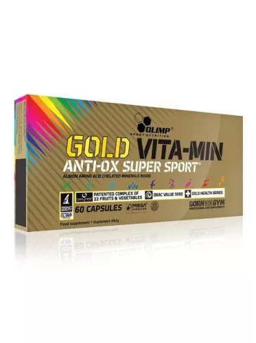 Az OLIMP GOLD VITA-MIN anti-OX super sport? Mega Caps® 60 kapszula megerõsített speciálisan kiválasztott vitaminok és ásványi anyagok formulája EXTRA erõs kivitelben sportolók számára.