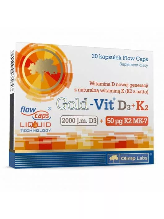 Az Olimp Gold-Vit D3+K2 termék a D-vitamin és a K-vitamin egyesítésével a csontok, fogak és keringési rendszer védelmére és erõsítésére.